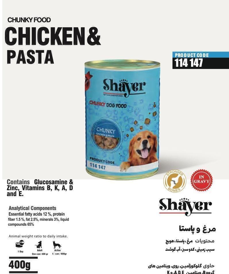 کنسرو سگ چانکی شایر مرغ و پاستا 400 گرم