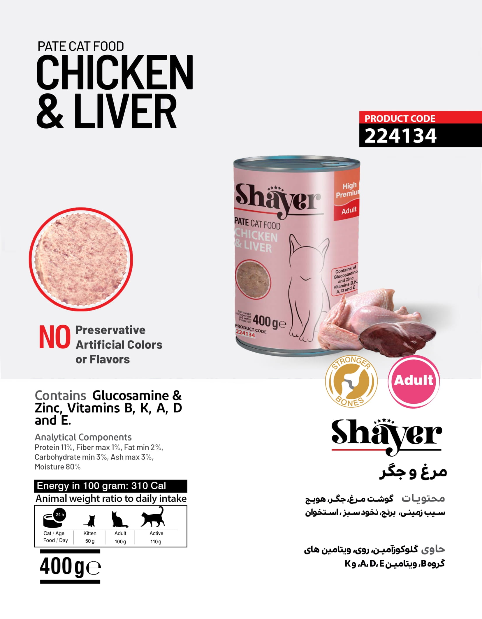 کنسرو گربه شایر مرغ و جگر پته Shayer Pate Cat Food Chicken & Liver