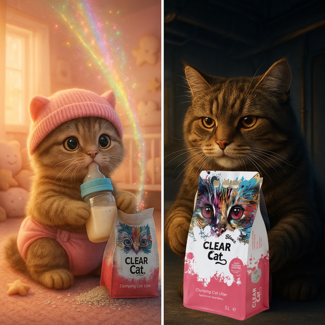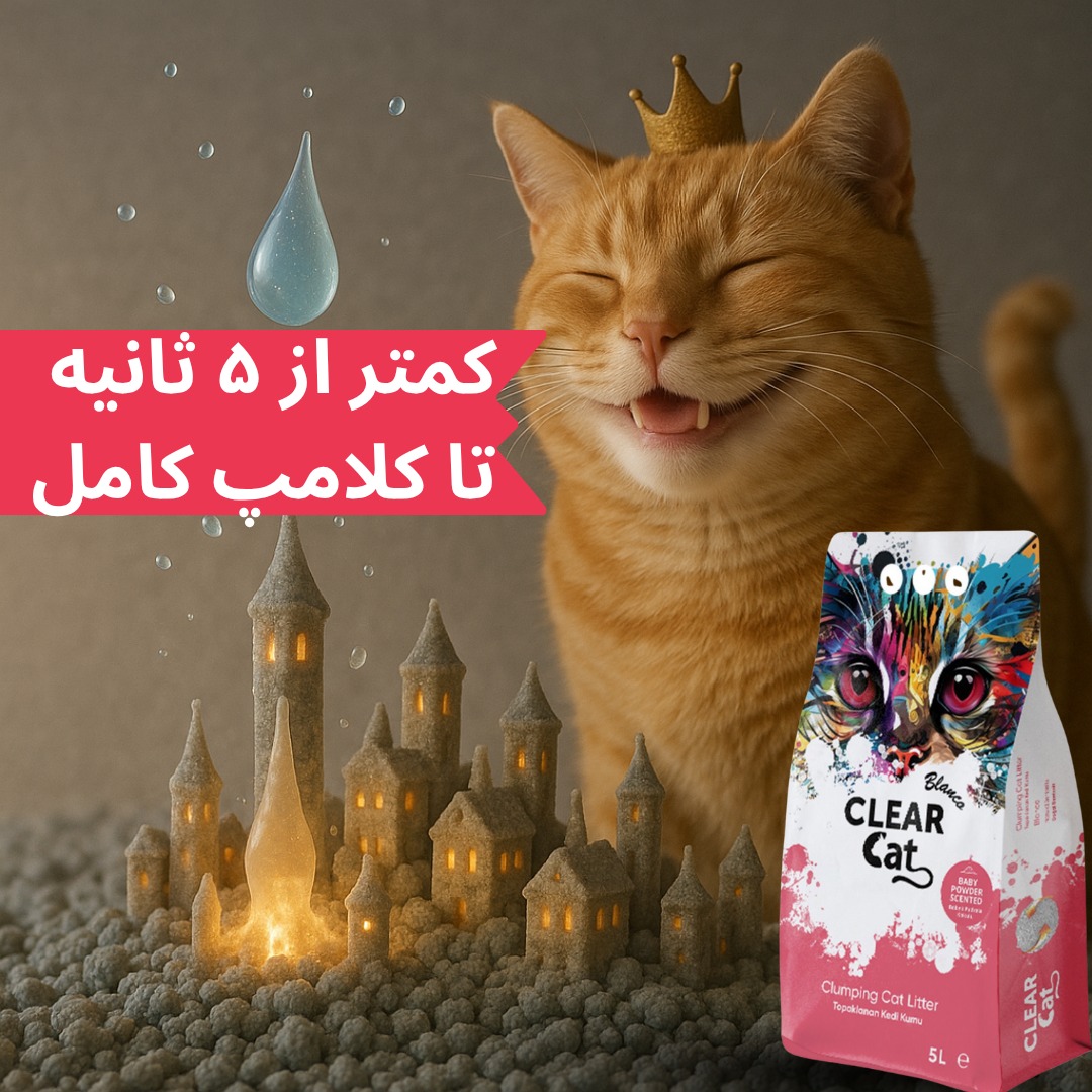 خاک گربه کلیر کت با رایحه پودر بچه - وزن(5 لیتر)