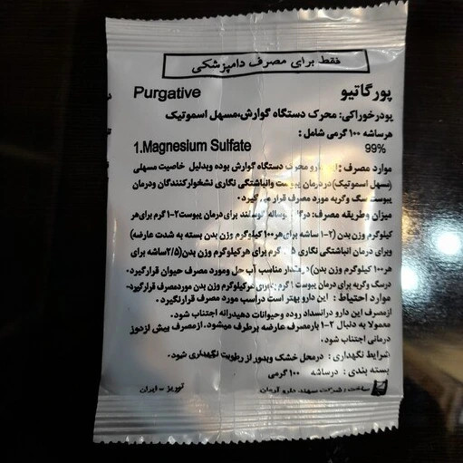 پورگاتیو 100 گرمی (پودر خوراکی محرک دستگاه گوارش و مسهل اسموتیک پورگاتیو( 100 گرمی) جهت استفاده دام و حیوانات خانگی)